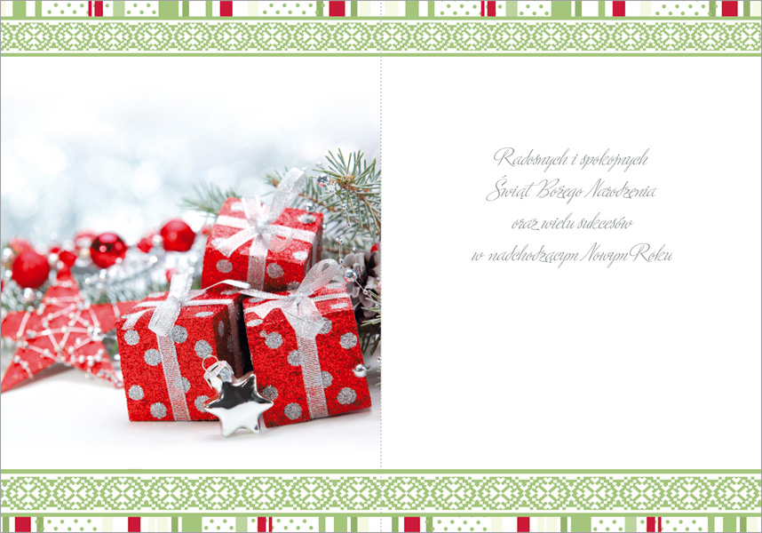 Opis: uszlachetnienie: brokat, kolorowy zadruk środka, koperta w komplecie, dostępny w dwóch wersjach: - z gotowym, nadrukowanym już wewnątrz tekstem życzeń - bez tekstu życzeń, z możliwością nadrukowania dowolnego, własnego tekstu lub wybranego z propozycji Enzo