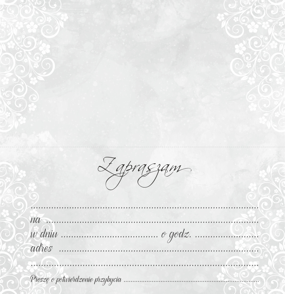 brokat, gotowy nadruk wewnątrz zaproszenia, koperta w komplecie