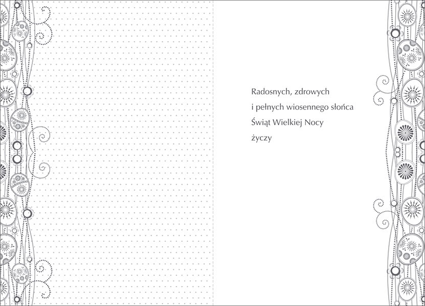 Opis: Karnet uszlachetniony brokatem, koperta w komplecie Dostępny w dwóch wersjach: - z gotowym, nadrukowanym już wewnątrz tekstem życzeń  - bez tekstu życzeń, z możliwością nadrukowania dowolnego, własnego tekstu lub wybranego z propozycji Enzo