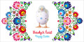 Opis: uszlachetnienie: brokat, kolorowy zadruk środka, gotowy, nadrukowany już wewnątrz tekst życzeń, koperta w komplecie